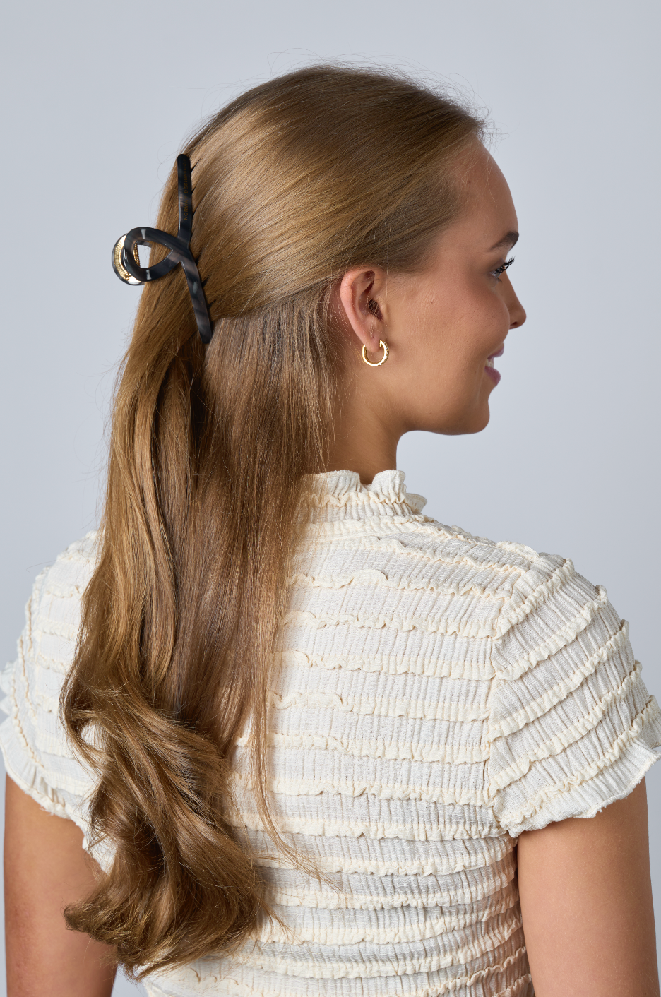 Hårklypen er laget av celluloseacetat, et naturlig og bærekraftig materiale som er et miljøvennlig alternativ til tradisjonell plast.
