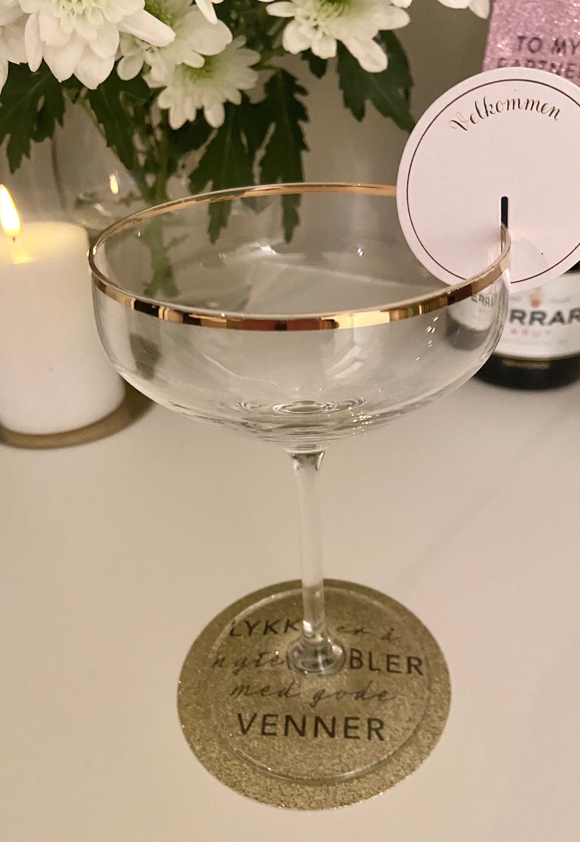 Coaster gull glitter "Lykke er å nyte bobler med gode venner"
