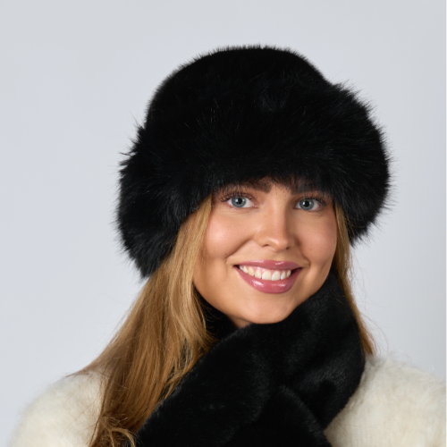 Denne kule luen/hatten i myk fuskepels er et luksuriøst tilskudd til høst- og vintergarderoben.