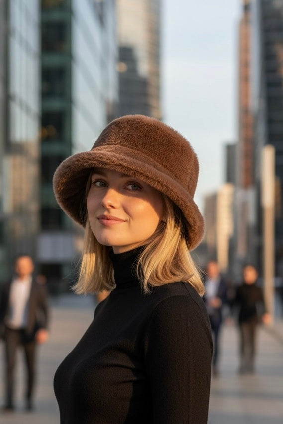Praktisk og komfortabel lue som kan vrenges og brukes på begge sider. Den ene siden har et glatt, semsket-lignende uttrykk, mens den andre siden er kledd i myk fuskepels for ekstra varme. Luen gir god isolasjon og en behagelig passform på kjølige dager. Egnet for daglig bruk i høst- og vintersesongen.