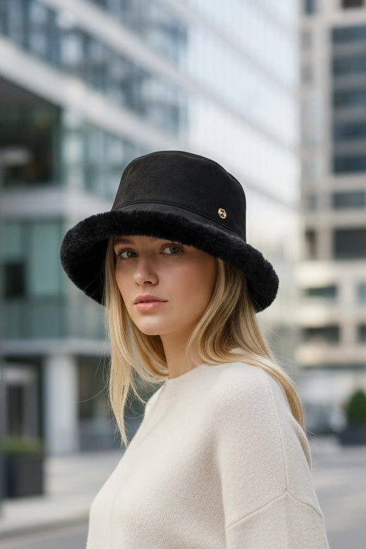 Praktisk og komfortabel lue som kan vrenges og brukes på begge sider. Den ene siden har et glatt, semsket-lignende uttrykk, mens den andre siden er kledd i myk fuskepels for ekstra varme. Luen gir god isolasjon og en behagelig passform på kjølige dager. Egnet for daglig bruk i høst- og vintersesongen.