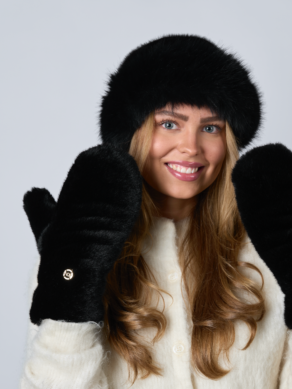 Disse myke vottene i fuskepels er et luksuriøst tilskudd til høst- og vintergarderoben. Vottene er foret med mykt stoff og med elastikk rundt håndledd for ekstra god passform.