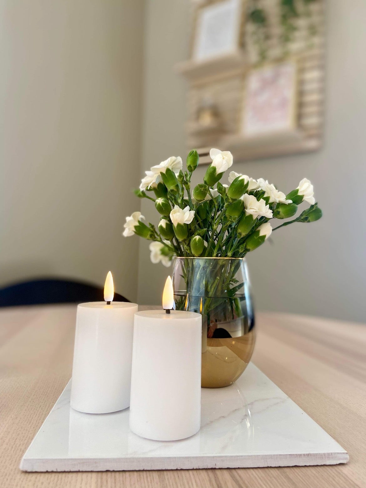 Våre LED-kubbelys er laget av voks med en "levende" 3D flamme som blafrer.