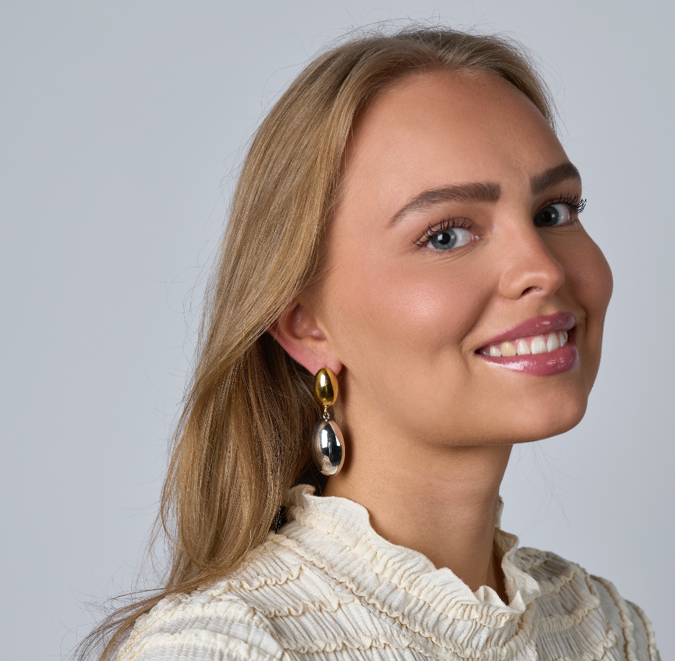 Lekre øredobber laget i rustfritt stål med 18K gull og PVD-coating, som gjør metallet vannbestandig og ekstra slitesterkt.