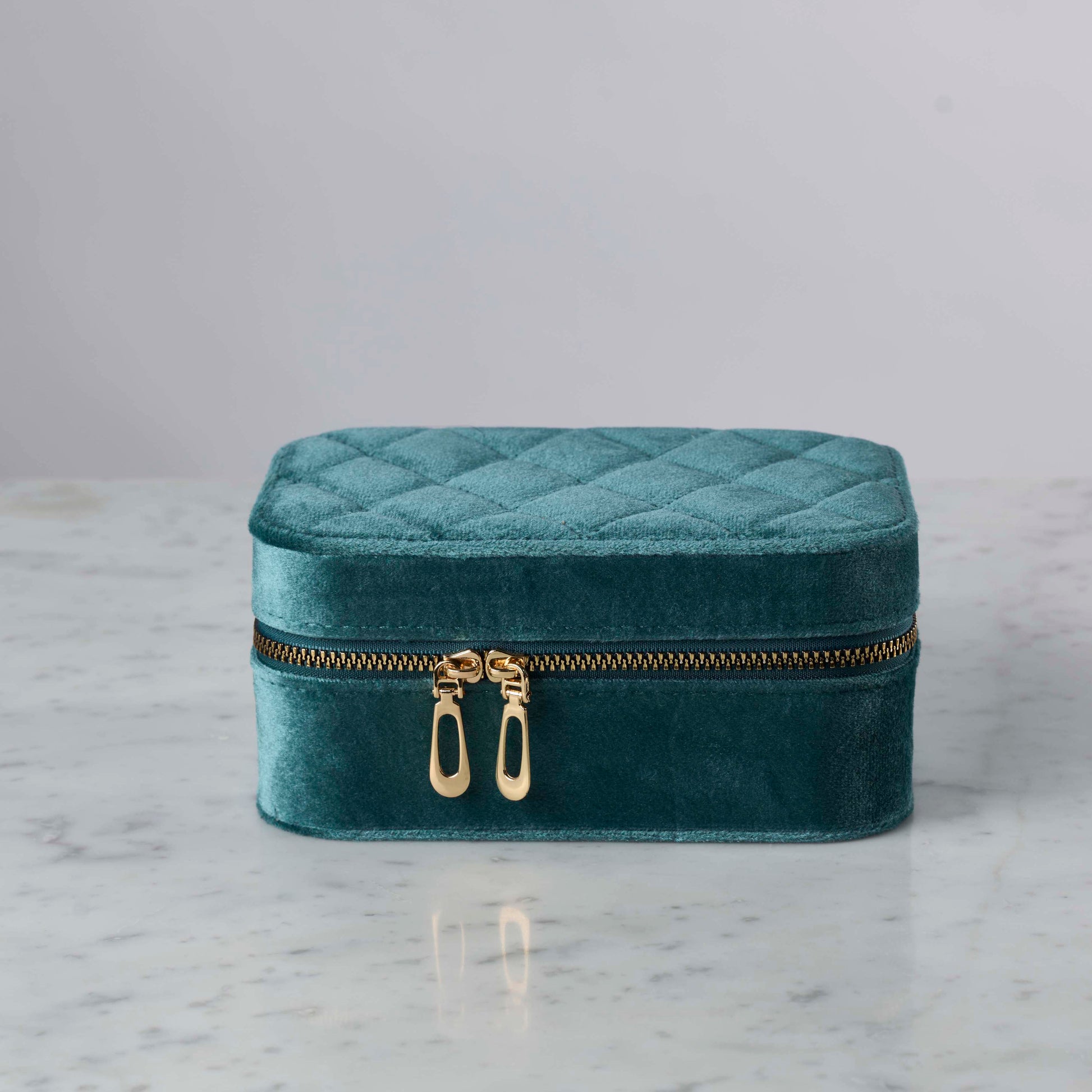 Elegant smykkeskrin i velour med plass til smykker i to etasjer.